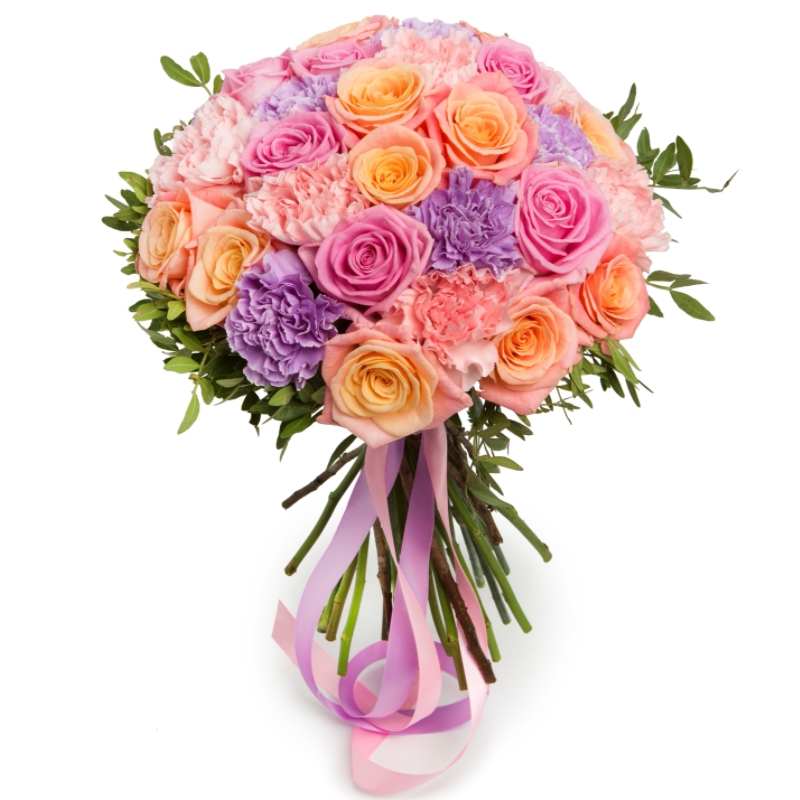Букет из роз и гвоздик "Улыбка радуги"